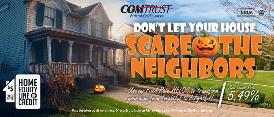 Read MoreIs your home looking a bit too spooky for the season? With our 5.49% Fixed Rate Home Equity Line of Credit, you can turn your frightful house into a delightful home! Whether you’re planning major renovations or just giving your space a well-deserved upgrade, now’s the time to act. Don’t let your house scare the…